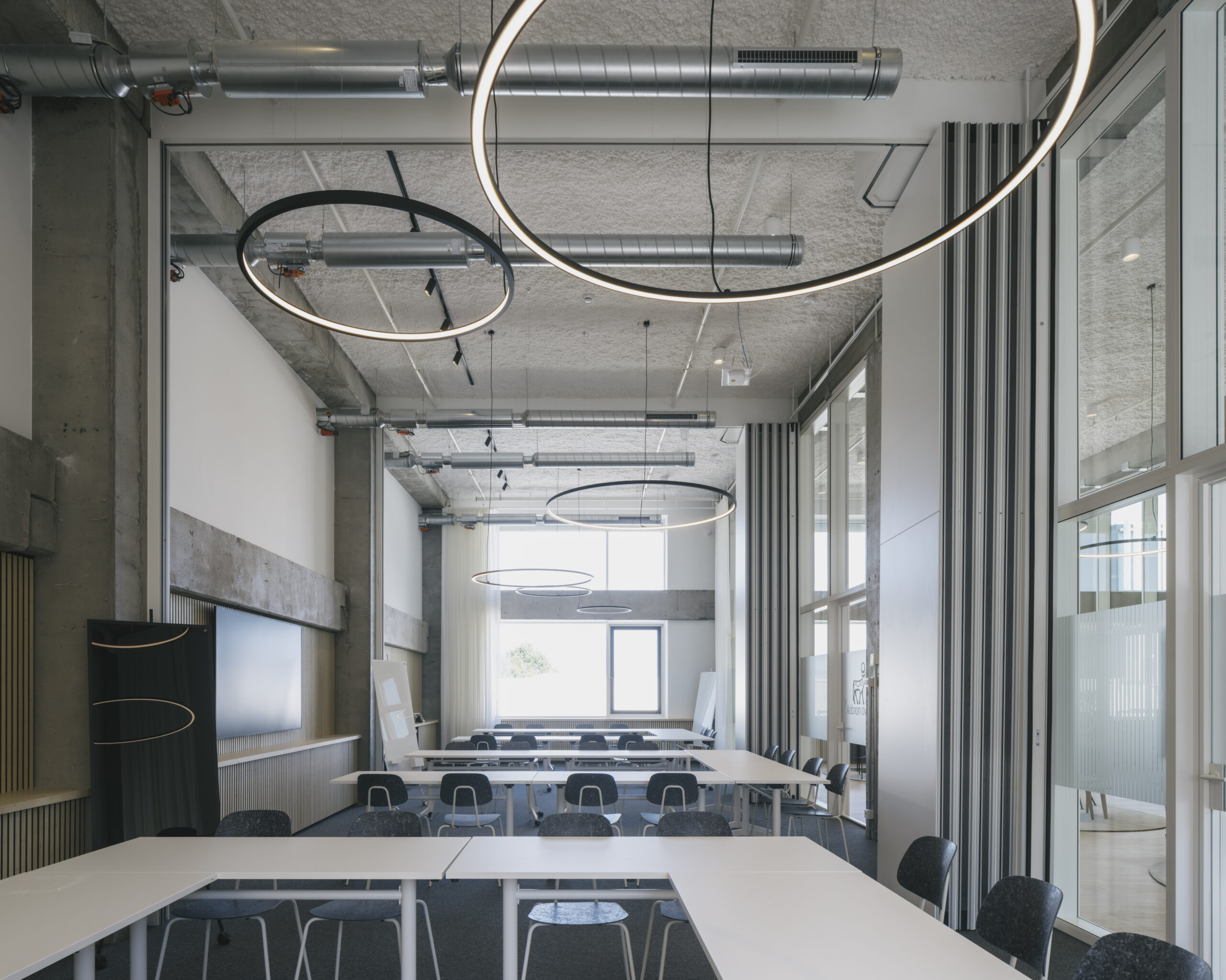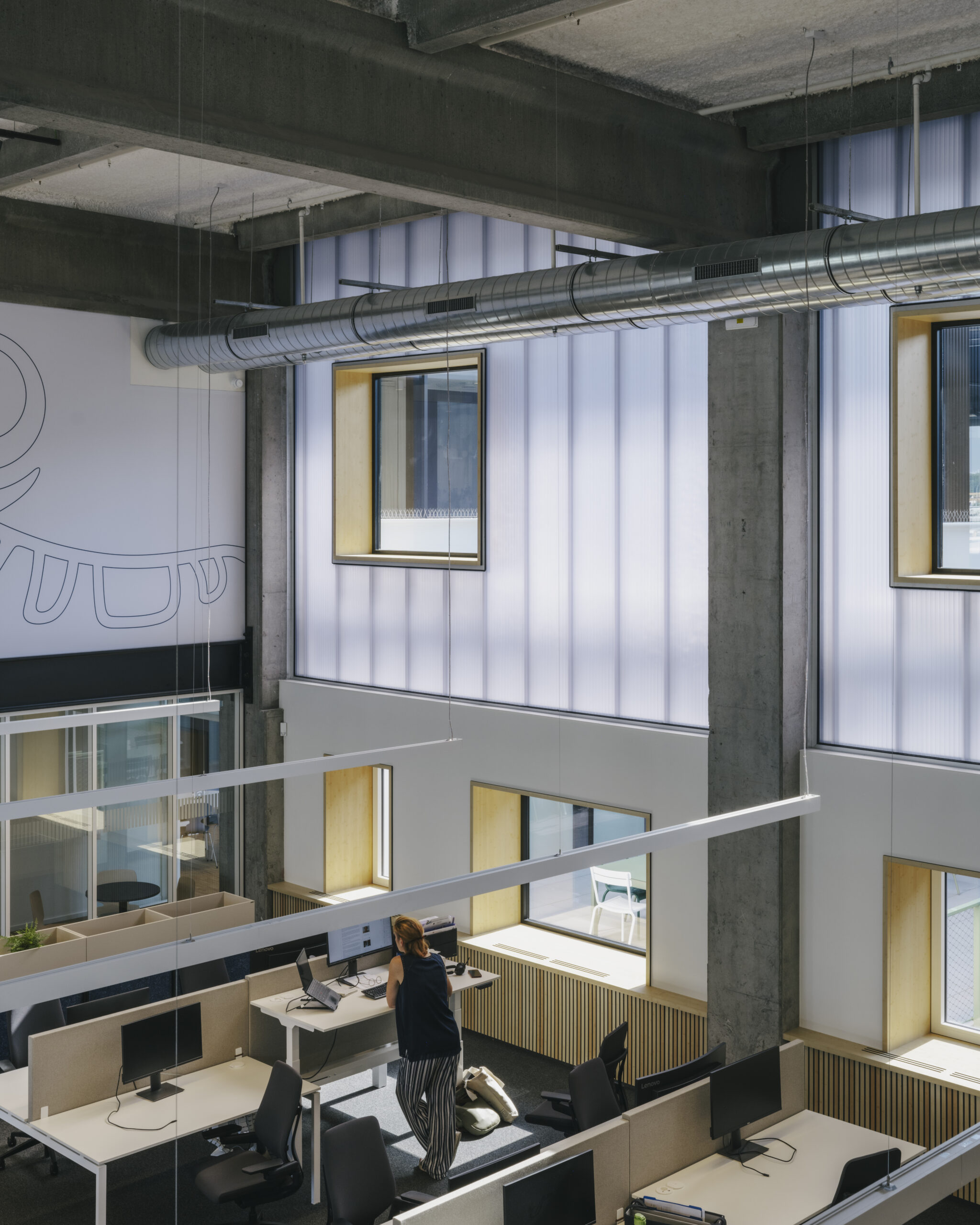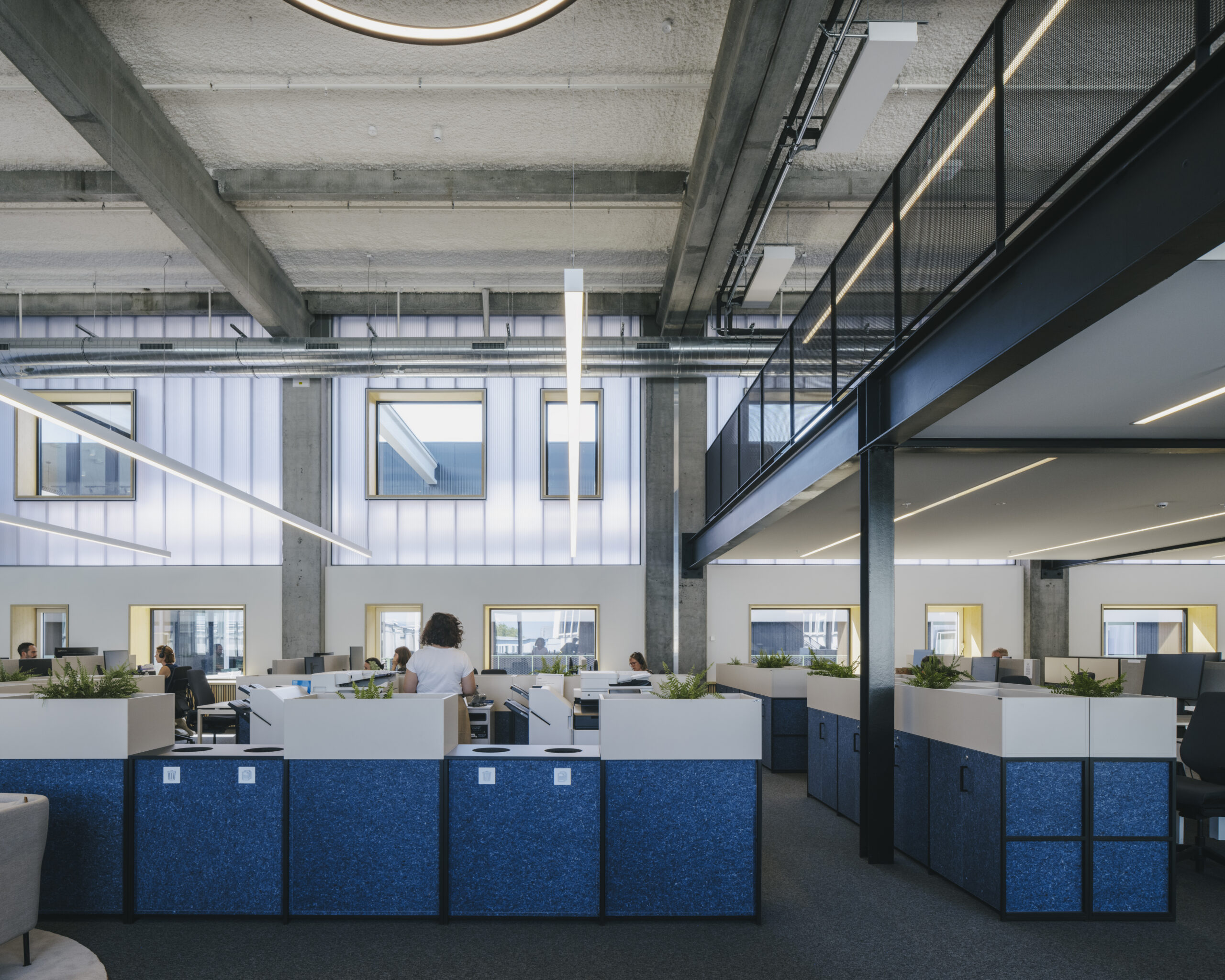Au cœur du site Westgate, dans l'ancienne imprimerie de Corelio, KRAS Architecten a réalisé, en collaboration avec Studio BM, le nouveau siège social de Novo Nordisk Belgium. Dans la structure en béton conservée, nous avons créé un lieu de travail où les gens peuvent se rencontrer, travailler (ensemble) et innover. Tout comme la durabilité est le fil conducteur du développement de l'ensemble du site, elle a été prise en compte dans les moindres détails, notamment dans le mobilier et les panneaux acoustiques fabriqués à partir de jeans recyclés. Architecte - Kras Architecten Reportage photo - @johnnyumans